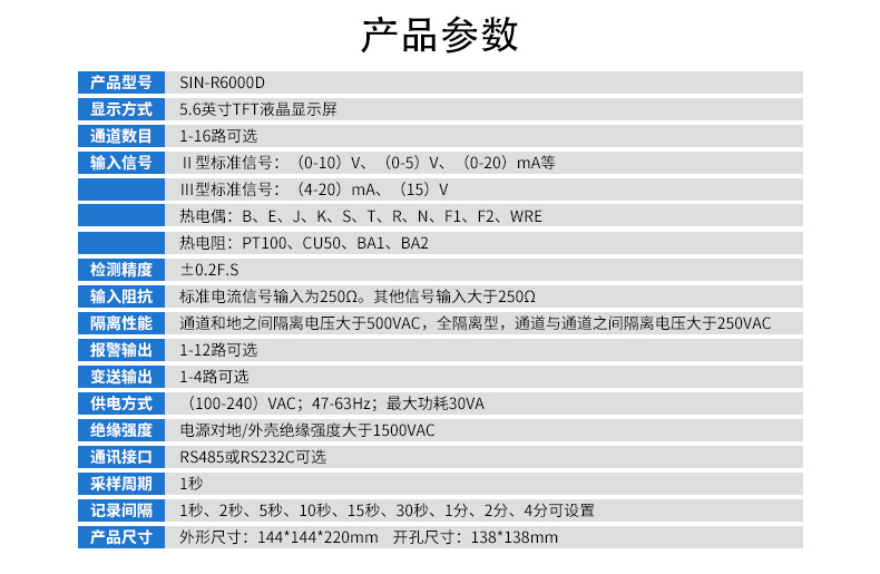 簡要描述:SIN-R6000D系列無紙記錄儀是一種高速高性能微處理器和5.6英寸彩色液晶顯示屏,對現場各種溫度、壓力、流量、電量等信號實現監測、控制和記錄功能。